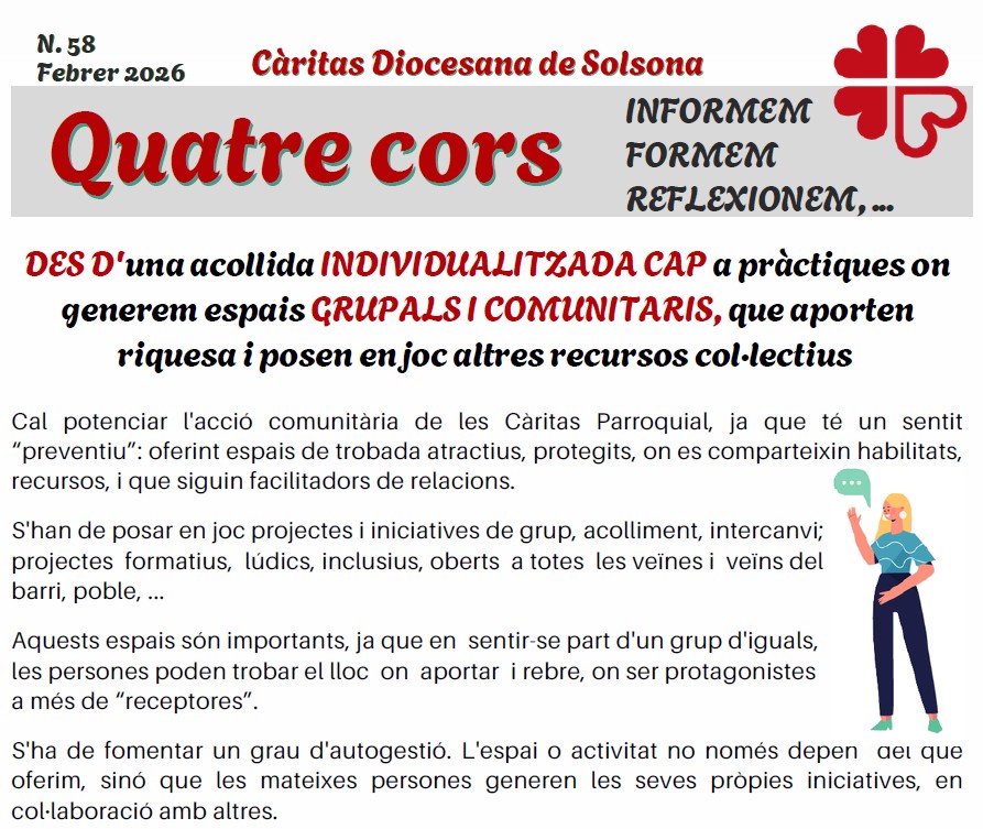 quatre cors – des d’una acollida individualitzada cap a… Per CaritasDSolsona | febr. 17, 2026 | Càritas Diocesana Solsona